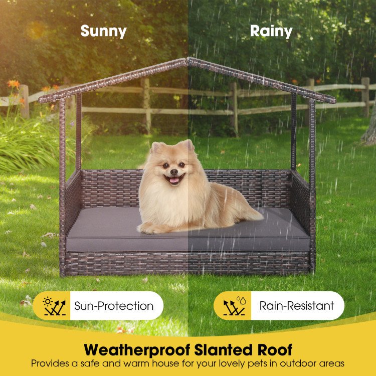 Outdoor Wicker Dog House with Weatherproof Roof