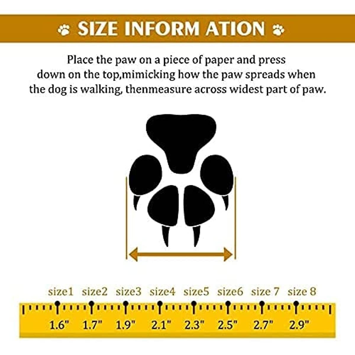 [Safe and Adjustable:]Easy to put on / off ; the dog shoes are fastened firmly by 2 straps; which are long and adjustable ; capable to prevent slipping off and supply a customized tightness for secure closure and have reflective straps; reflective lines enhance visibility all the night ; also make your love dog safe .Please try to tighten the straps after wearing; which can effectively prevent the shoes from falling off the dog's claws.
